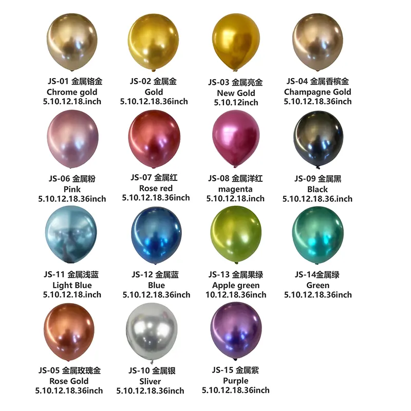 I motsetning til vanlige lateksballonger, ligger verdien av 1,8 g metalliske lateksballonger i den perfekte balansen mellom tre nøkkelfaktorer: "presisjon i vekt, metallisk tekstur og funksjonell stabilitet." Vi har etablert et omfattende kvalitetskontrollsystem som dekker hele produksjonsprosessen, fra valg av råmateriale til forsendelse av ferdig produkt, basert på prinsippet om "omvendt utvikling av produksjonsstandarder fra kundenes behov."