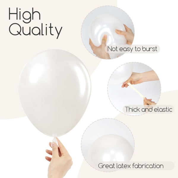 12 tommers perlelatex partyballong:Perleballonger er ekstremt iøynefallende når de er i festballongsettet. Dette settet inkluderer 15-20 stk 12 tommer rosegull perleballong, 20 stk rosegull 10 tommers perleballong, 1 stk 18 tommers rosegullperleballong og noen andre stiler ballonger med totalbeløpet på 130-150 stk. og passer til bursdager, høytider og alle slags fester. Du kan også bruke flere ballonger fylt med helium og binde dem sammen med tau til siden. Den egner seg veldig godt til å ta bilder med venner og familie. Du kan posere dem på mange forskjellige måter. De er bokstavelig talt din gode partner når det gjelder bilder.