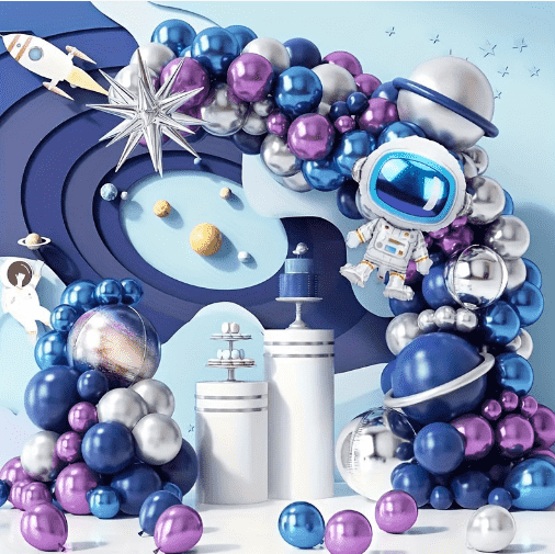 Astronaut folieballongkranssett er det iøynefallende våpenet for store aktiviteter, egnet for festbakgrunnsvegg, inngangsoppsett til kjøpesenteraktivitet. Med ballongkjeden som base er astronauttrykkballongen, rakettfolieballongen, farget planetballong og matt lateksballong ispedd og fikset. Kransdressen kan henges direkte på veggen eller dørkarmen. Det dype stjernehimmelfargesystemet matches med lys metallisk glans, som umiddelbart fyller den oppslukende romatmosfæren og blir det visuelle fokuset på aktivitetsstedet.