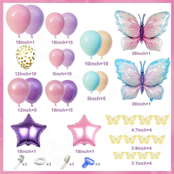 Sommerfuglstilen har vært veldig populær i mange år. Den representerer romantikk og frihet. Både voksne og barn vil bli tiltrukket av sommerfuglstilen. Mange av dem håper å bruke dette settet med sommerfuglballongkranser til bursdagsselskapene sine. Dessuten kan du bruke det til bryllup, høytider, babyshower og eventuelle jubileer.