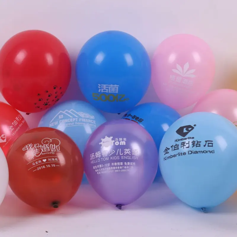 Fleksible og forskjellige størrelser: Vi støtter tilpasset utskrift av standardstørrelser som f5 tommer(diameter 12 cm),10 tommer(diameter 24 cm),12 tommer(diameter 30 cm),18 tommer(diameter 38 cm), og36 tommer(diameter 65 cm). Vi støtter også tilpasset utskrift avlateks ballongerav alle størrelser innenfor 36 tommer (minimum bestillingsantall: 500 stykker).