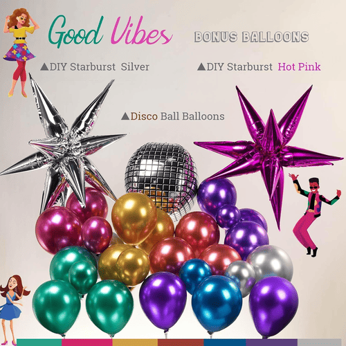 De forskjellige størrelsene og fargene på ballongene har skapt en veldig kompleks lagdelingseffekt for dette settet, som kan tiltrekke seg mye oppmerksomhet for arrangementet ditt. Den egner seg veldig godt til discofester, musikkarrangementer, bursdagsfester og så videre. Også ettersom K-pop-musikkkulturen blir mer og mer populær i verden, kan du gjøre denK-pop disco ballongbuesettved å legge til flere dekorasjoner i K-pop-stil, for eksempel bakteppe eller folieballonger. Eller legg til bursdagsdekorasjoner for å lage et discoballongbursdagspyntsett.