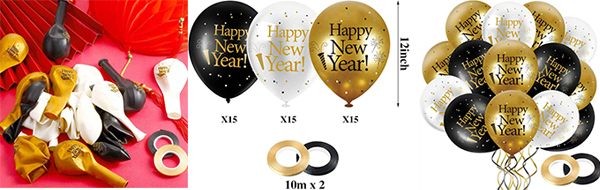 Latekskuler med nyttårstema er dekorative ballonger tilgjengelig i sett, med nyttårsdesign som "Godt nyttår" eller festlige farger som svart, gull og sølv. De er perfekte for fester og kan brukes til å lage ballongbuer, buketter eller henges fra taket. Alle lateksballer med nyttårstema som tilbys av Borun Balloon Factory er utelukkende laget av lateks og oppfyller Happy New Party Latex Balloons CE-sertifisering. Niun-merket støtter engrossalg av disse lateksballongene med nyttårstema. Disse lateksballene for godt nyttår er både praktiske og estetisk tiltalende, og tilbyr både kostnadseffektiv og kreativ design. De hever øyeblikkelig den festlige atmosfæren og bringer varme og glede til enhver feiring.