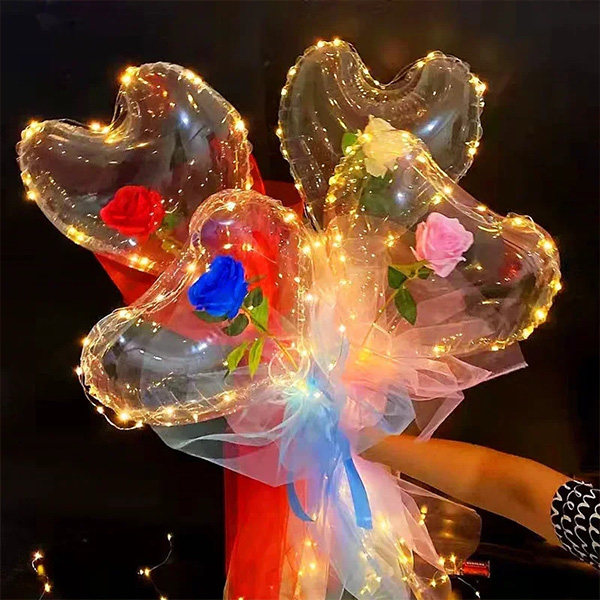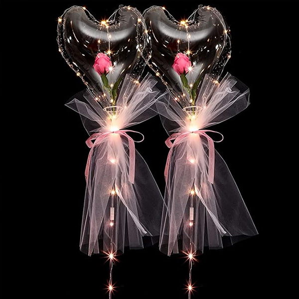 Dette hjerteformede boboballongrosesettet produsert av oss inneholder hjerteformet bølgeballong, kunstig roseblomst, led-lampe, lysstang, bånd og gasbind. Dette hjerteformede boboballongrosesettet har en rekke kunstige roser å velge mellom. Vi har matchet den med bånd og garn i tilsvarende farger. Størrelsen på denne hjerteformede boboballongen er 7-8 cm, som lar deg fylle blomster uten å bruke ballongutvider eller ballongfyllingsmaskin. Disse gjennomsiktige plastballongene er svært egnet for ulike anledninger, for eksempel bryllup, forlovelsesseremonier, konfirmasjonsfeiringer, bursdagsfester og ulike arrangementsscener, som enkelt kan legge til et snev av eleganse til aktivitetene dine.