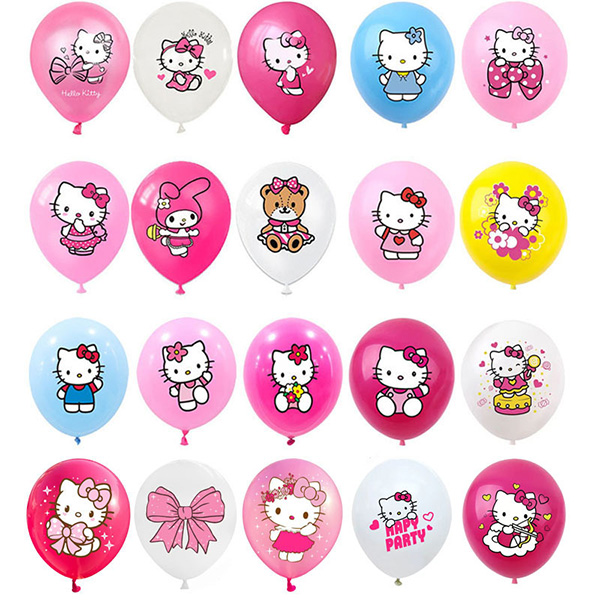 Hello Kitty lateksballonger er dekorative ballonger, tilgjengelig i sett, med Hello Kitty-design og i en rekke farger å velge mellom. De er perfekte for fester og kan brukes til å lage ballongbuer, buketter eller henges fra taket. Alle Hello Kitty lateksballonger levert av Borun Balloon Factory er laget utelukkende av lateks. Våre lateksballonger er ikke bare vakre i utseende, men også laget av slitesterkt lateksmateriale, noe som sikrer deres styrke og levetid. Du kan trygt blåse dem opp med helium eller luft uten å bekymre deg for at de sprekker.
