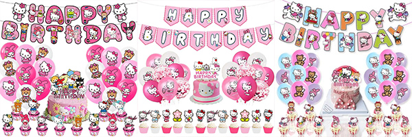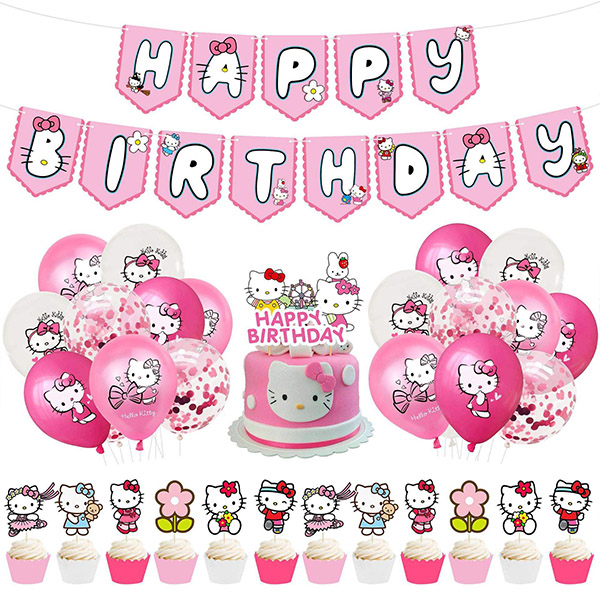 2) Papirbanner: Hello Kitty-bannere med "Happy Birthday" skrevet på er perfekte for å feste på tegneserierosa kort. Kartongen er veldig tykk og solid. De legger til en gledelig atmosfære til arrangementet ditt, og sikrer at det varer. Nøye utformet, tenner de lidenskap.