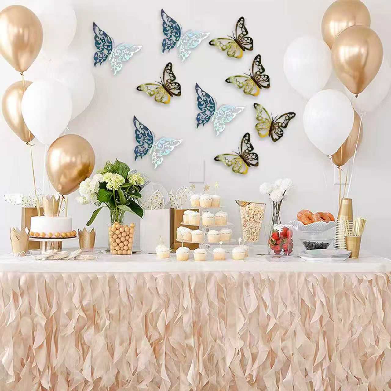 Ballongsett (inkludert vanlige ballonger i forskjellige størrelser, ballongkjeder og inflatorer) er viktige produkter for dekorasjon som festivaler og feiringer, men et enkelt sett er tykt og tungt. Hollow-out sommerfugl-klistremerker kan berike layoutnivåene gjennom batchpynting og lokal fokusering, noe som gjør storstilt layout mer fleksibel.
