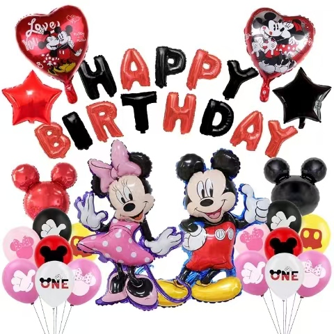 Mickey Minnie er Disneys representative karakterer. De er tegneseriebilder basert på mus. De har runde hoder og runde ører. De er veldig livlige og herlige. De er elsket av barn over hele verden. Disse små Mickey Minnie folieballongsettene produsert av fabrikken vår er laget av materialer av høy kvalitet, holdbare og gjenbrukbare, ikke lett å bryte, egnet for innendørs og utendørs dekorasjon. Dette lille settet inneholder en Mickey eller Minnie folieballong, to tegneseriefigurer trykte folieballonger og to stjerner folieballonger. Disse festgjenstandene passer ikke bare til bursdagsanledninger, men dekorative sett er også veldig populære til barneselskap. Å bruke dette settet på barneselskapet ditt vil gjøre festen mer interessant og gjøre gjester og barn glade.