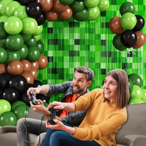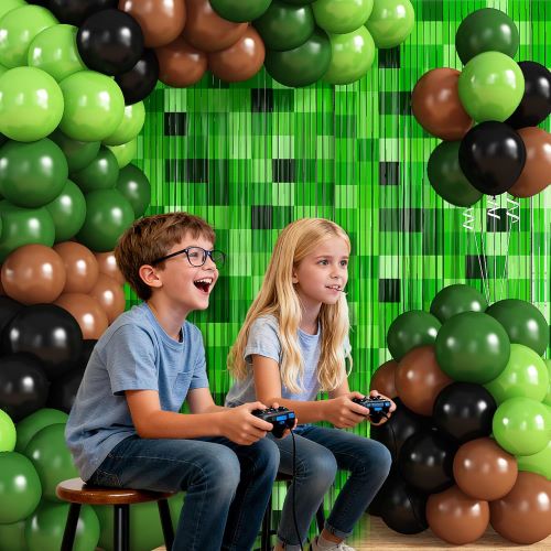 Det er inspirert av minecraft-videospill, og dette slitesterke minecraft-ballongbuesettet kombinerer ulike nyanser av grønne pikselballonger med minecraft-temafestbakgrunner for å skape et lekent lagvis utseende som fanger sjarmen til klassiske eventyrspill.