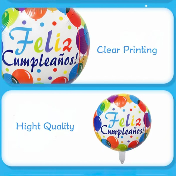 De inkluderer bursdagsballonger i mange stiler. Noen har "Happy Birthday" eller "Feliz Cumleaños" skrevet på dem, med elementer som blomster, kaker og lys. Andre er for spesifikke bursdager, for eksempel "First Birthday Girl". De er bra for anledninger til bursdagsfest. De skaper en lykkelig og varm stemning for bursdagsfeiringer.