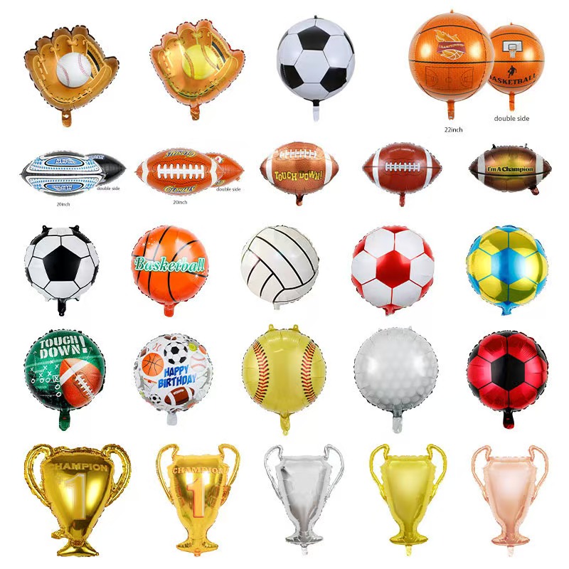 Designet dekker modellering av sportsutstyr, basketball, fotball, manualer, trofeer, silhuetter av sportsfigurer, "WIN", "GOAL" og "CHAMPION" og andre insentivbokstaver. En enkelt stor ballong (18-36 tommer) trenger ikke komplisert matching, og kan bli det visuelle fokuset når den henges i midten eller inngangen til aktiviteten. Den er spesielt egnet for scener som å heie på store arrangementer, utendørs sportsaktiviteter og campus-sportspill, som umiddelbart tenner scenens entusiasme.
