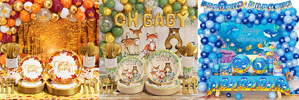 Fester er en primær bruk for NIUN® papirvare. Å sammenkoble med et sett med temaballongkraner kan forbedre temaet. Hver ballongkarland har et tilsvarende tema og tilbyr en rekke farger for å koordinere perfekt med forskjellige papirfestesett. Å sammenkoble papirvare med de tilsvarende temaene Balloon Garland Styles vil skape en blendende fest!