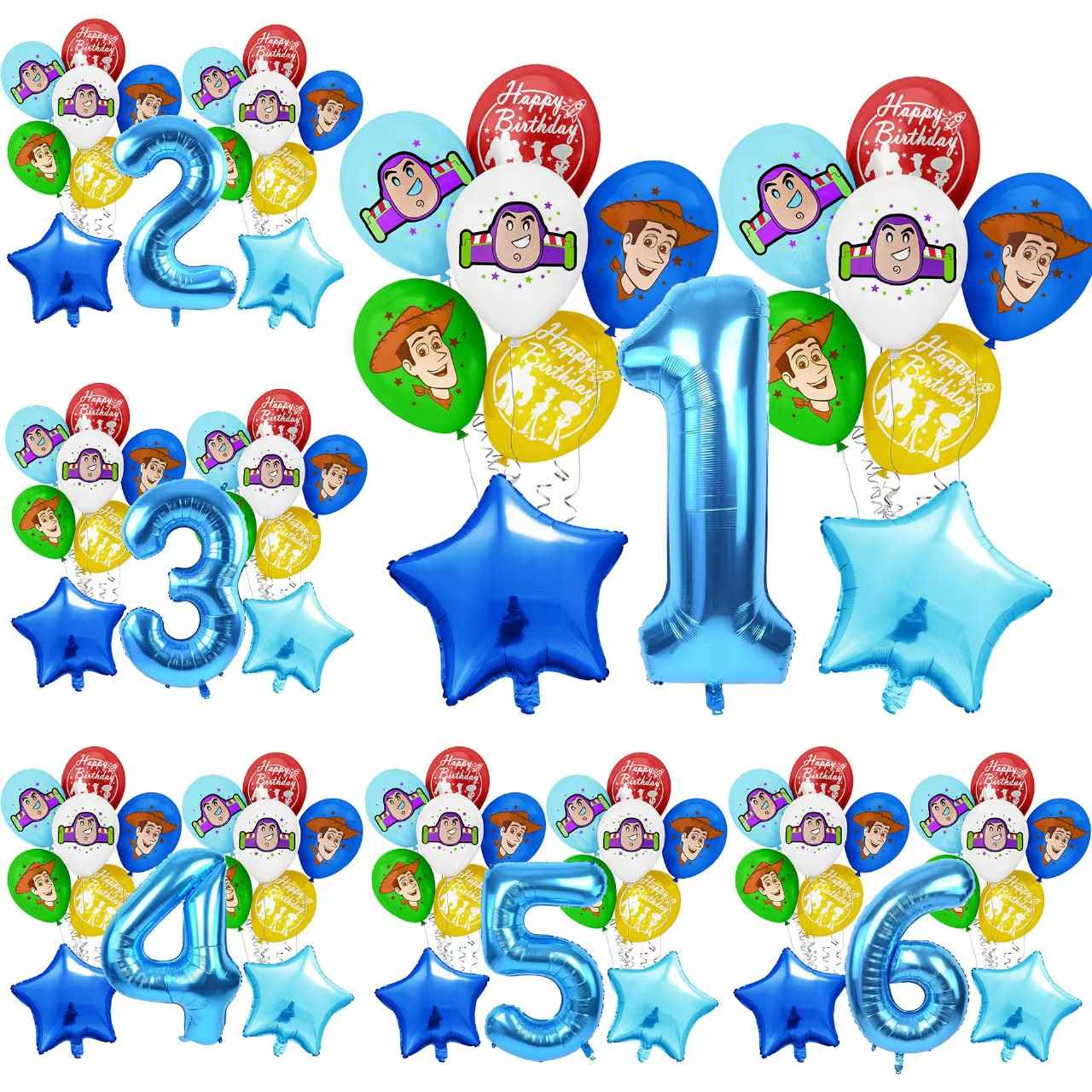 Toy Story latex ballonger bruker blå, gul, grønn og rød som hovedfarger. De viser hvite skyer og karaktertrykk. Utseendet samsvarer med filmstilen og er lett å vite. De er et godt valg for festdekor. Materialet er laget av naturlig latex, og er trygt og miljøvennlig. Ballongene strekker seg godt, hold deg rundt og fulle etter fylling, og dukker ikke lett. De passer til barnas fester.