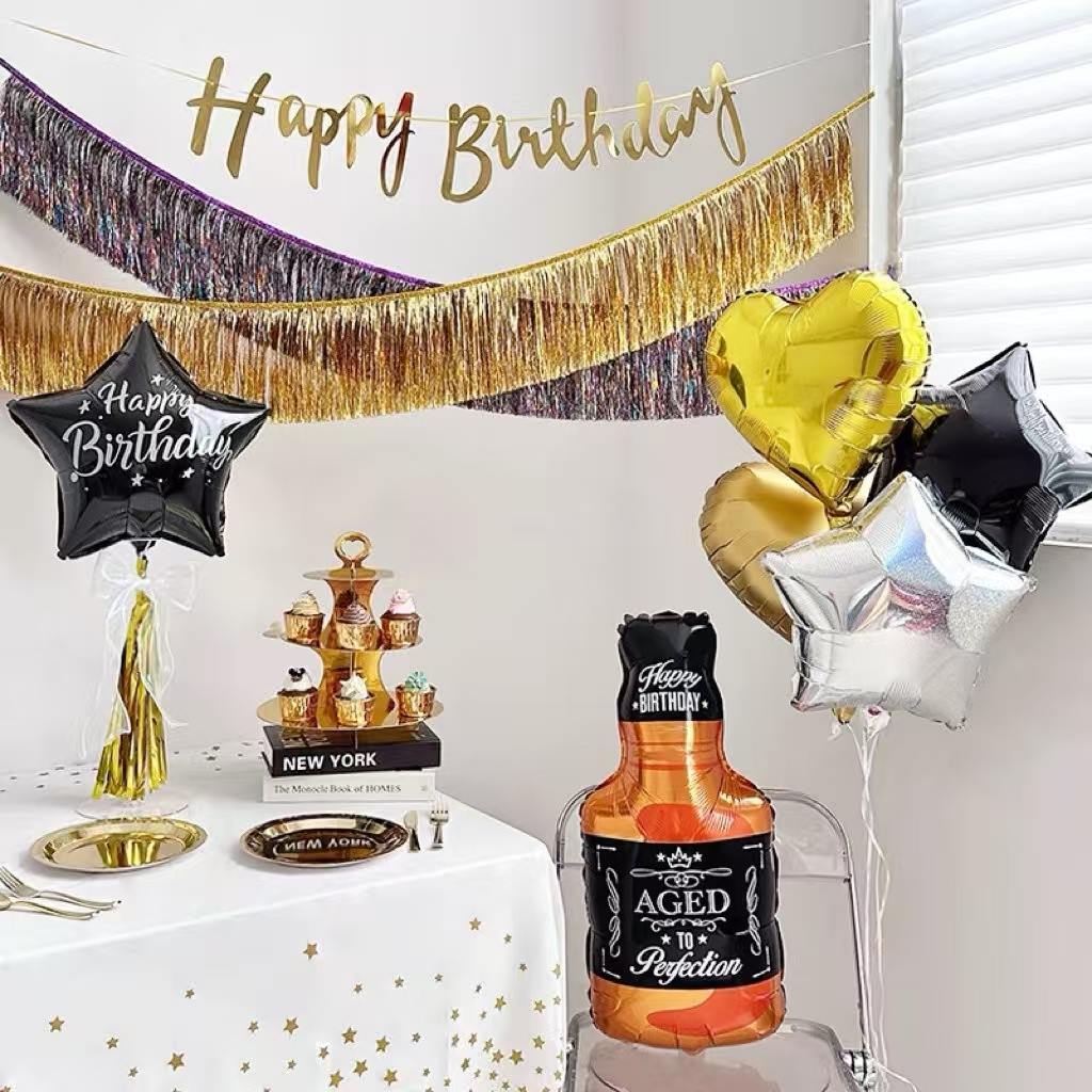 Det er også et sett med bursdagstema. De rosa og søte vinflaskeballongene er designet med hjerteformede folieballonger og "Happy Birthday" bokstavballonger, og rosa gullfargen er veldig romantisk og varm. Det gir en søt følelse til bursdagsfesten.